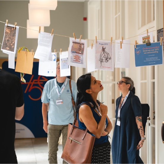 De vormgeving verbeeldt een frisse blik op wat studeren kan worden. Heldere vormen, karakteristieke illustraties en fris kleurgebruik geven het gevoel van vooruitkijken, alsof je even met andere ogen naar de toekomst kijkt. Geen sciencefiction, maar een visuele uitnodiging om anders te denken.